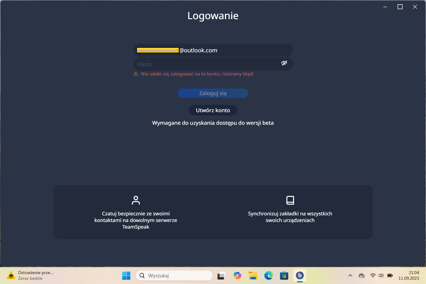 Nie mogę się zalogować na team speak, w oknie logowania pojawia się komunikat :