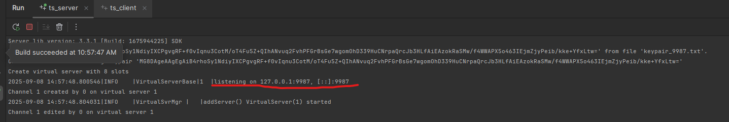 2025-09-08 17:41:22.893696|INFO |VirtualServerBase|1 |listening on 0.0.0.0:9987, [::]:9987