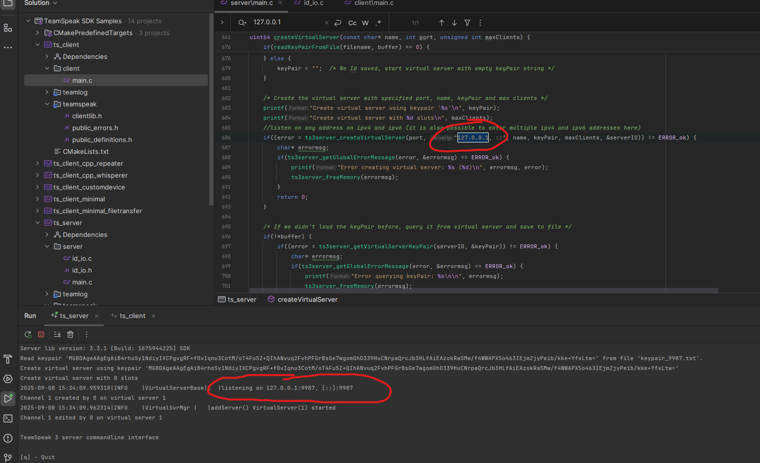I am currently trying to integrate TeamSpeak into my Unreal Engine game and I set up the SDK as instructed. I also created a SDK server instance and it runs fine on localhost:9987.