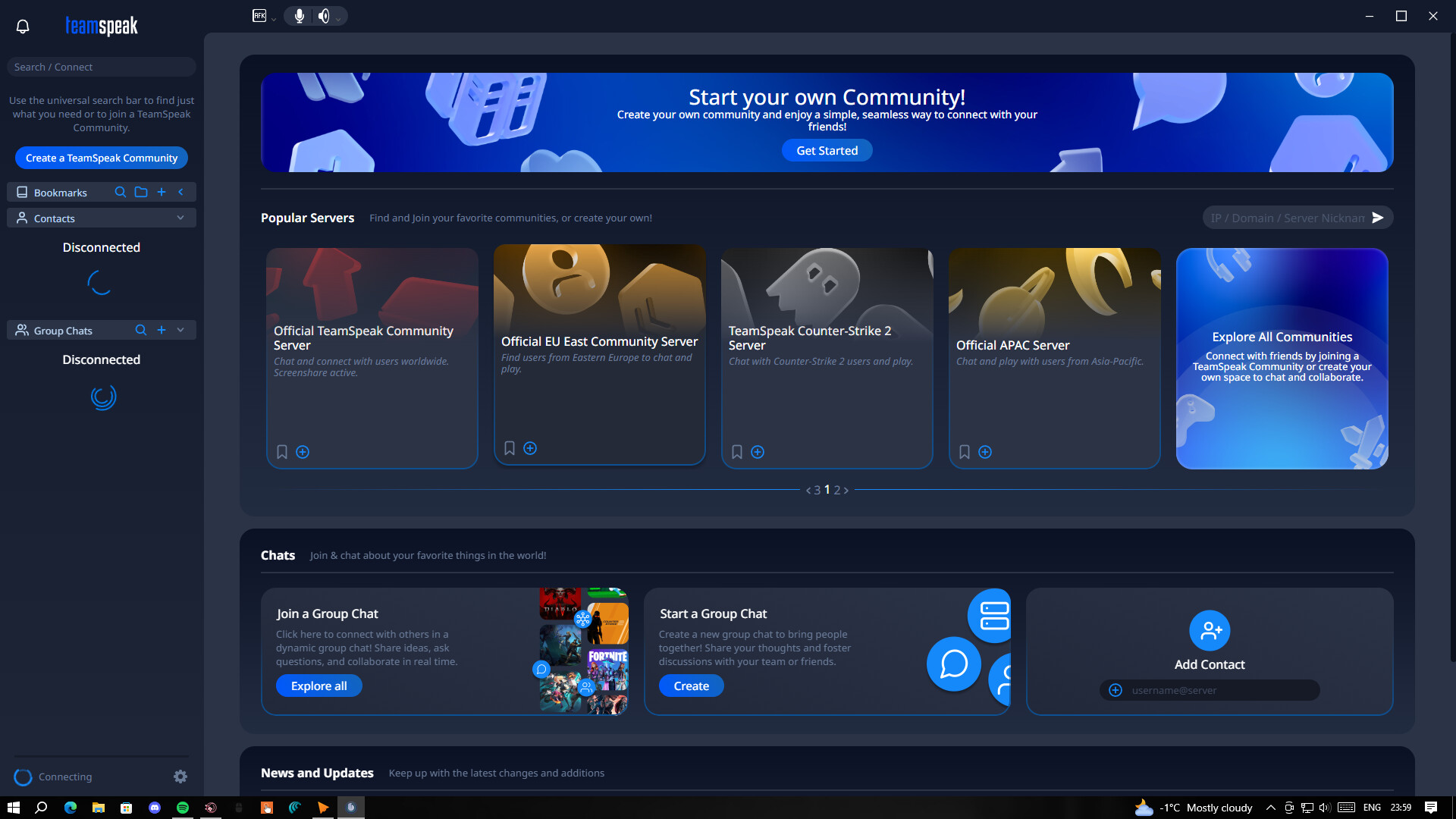 I also encountered this issue as I was not connected to the messaging service. I have changed two different devices and networks and reinstalled the TeamSpeak6 client, but still have not resolved the issue. I will attach my log file, please help me solve this problem.
