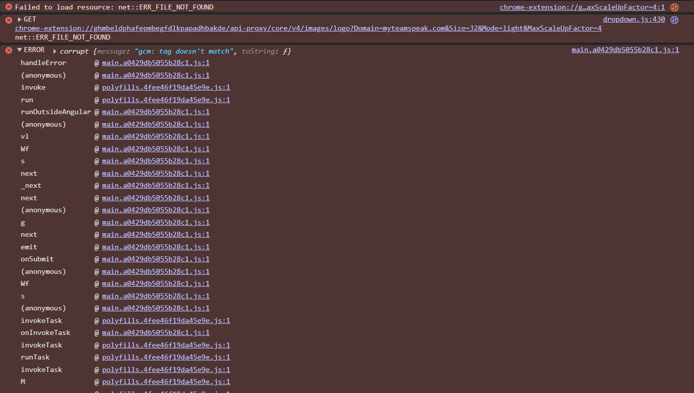 Hello, sorry for the delayed response, my hours are crazy! Anyway, per your request I do see a gcm: tag doesn’t match error much like Predonum did/does. Following the thread you posted very recently I logged into TS6Beta 3.4, changed the password, and attempted to change the email again (To a different email than the intended to check if it would work) it has not thus far, but I may need to just wait the 48 hours to try again (And probably log out from the site to refresh as well)