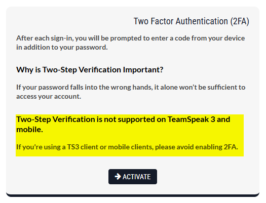 Or to use TS3 you will need to disable the 2FA. Like mentioned on the myTS website