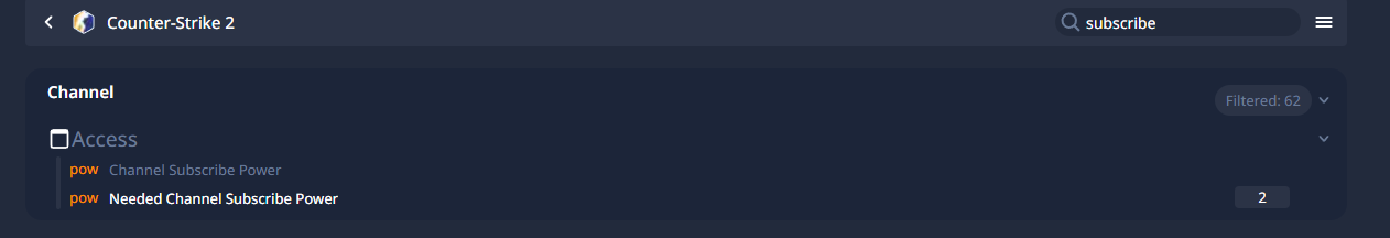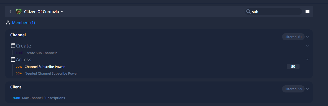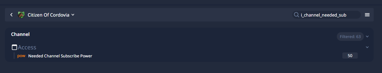I just did that but I do have some channels like spacers with higher i_channel_needed_subscribe_power as 70but everything else as 2 and it’s still giving the same error