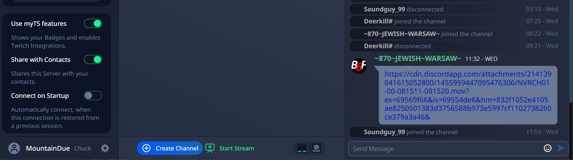 The chat is functioning well. I’m unsure how to check which version I’m using, but I pay a monthly fee for TeamSpeak 6 through their service. I’m currently researching how to find the server log, but I suspect that this information can only be accessed from the server side.