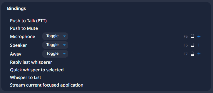 If you go to any game or go to any other application, the hotkey does not work. But if Teamspeak is minimized and you are not in the game, the keyboard shortcuts work.
