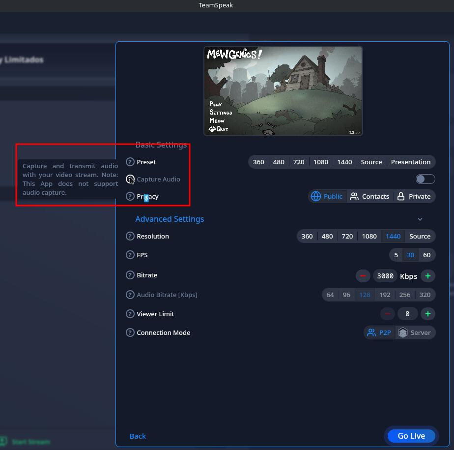 i was just streaming my game on linux and my friends notified me, that they are unable to hear any sound. upon checking my settings i noticed that i am not able to use this on my client? Is this a linux thing or do i have to configure some specific? The error states “This app does not support Audio recording (translated from german in this case) And i am not able to click on the button either