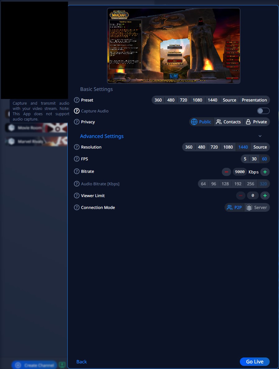 When video streaming i am able to enable audio capture on most things such as full screen share and some games like Diablo and Tabletop simulator, however on WOW Classic client and Marvel Rivals I am not able to switch on the Capture Audio button. When hovering over the information icon it says Note: This app does not support audio capture.