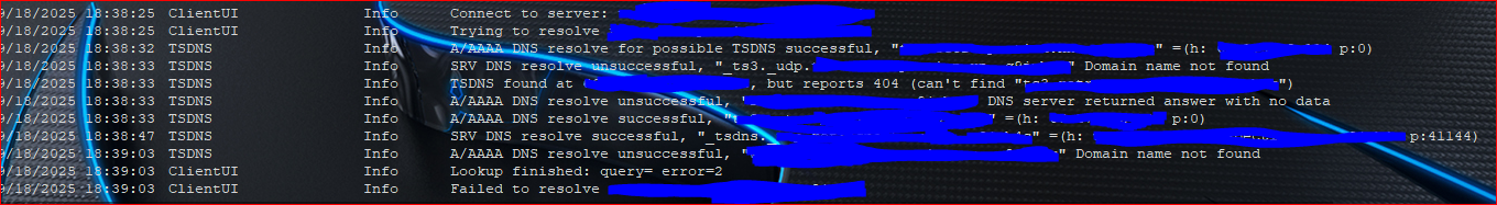 I see in my logs this also: "SRV DNS resolve unsucceful for “_ts3._udp.domain.com”