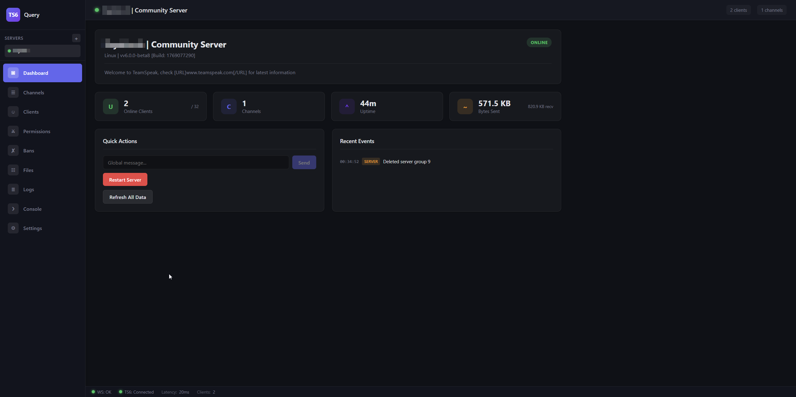 I am working on a up2date replacement for Yatqa (oldies will know) for TS6. For whoever feels like Managing the Server through the TS6 Client isn’t enough userfriendly.