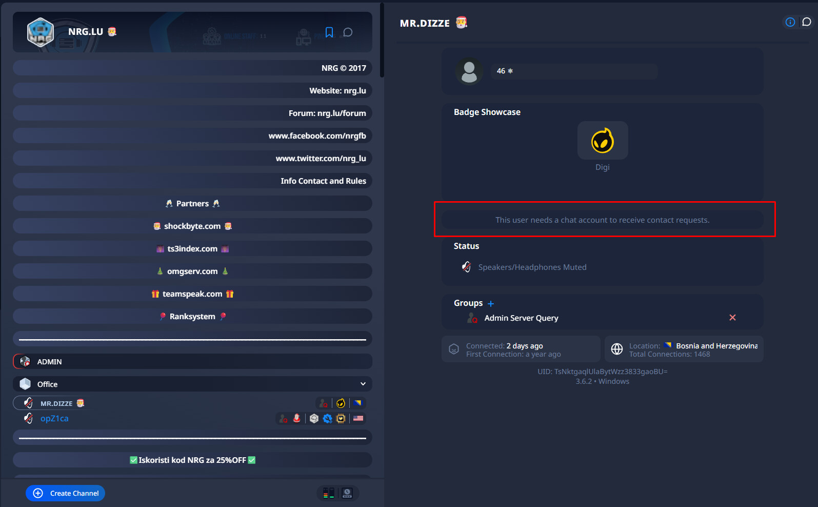 I don’t think this is worth fixing as the user first has already migrated to TS6, even though he is not using it… And secondly this only happens when using the TS3 client, which we last updated in 2023, meaning we kinda want to move on ![]()