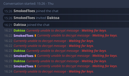 While this was occurring, all of my friends and I were online and within the same chat. This persisted in both group chats and direct messages.