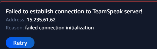 I just bought a community from the official teamspeak, but when i try to go claim it, i get and error saying it failed to establish connection to teamspeak server with the reason that it could not resolve hostname.
